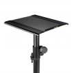 The Gravity GSP 3202 studio monitor stand has a heavy, triangular cast iron base. And the monitor tray is 250 mm x 250 mm in size with foam pads for damping. It is height-adjustable from 900 mm to 1500 mm for optimum speaker positioning and comes with a set of spikes. Mounted to the integrated large rubber feet, they achieve an effective coupling to the floor.