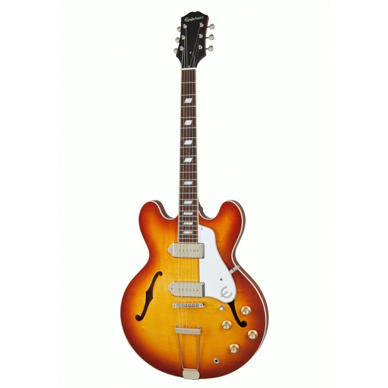 Now made in the USA for the first time in over 50 years! Since its introduction in 1961, the Epiphone Casino, has been the choice of countless musicians including Paul McCartney, John Lennon, George Harrison, Keith Richards, Ray Davies, Dave Davies, and Paul Weller. The new Casino from the USA Epiphone Collection featuring a classic Maple and Poplar body with a Royal Tan Nitrocellulose lacquer finish (black P90s) or a Vintage Sunburst Nitrocellulose lacquer finish (nickel Gibson USA P-90s).