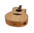 Venetian cutaway. Solid spruce top, mahogany back and sides. Patented ToneFlow bracing. Rosewood with multilayer ABS top binding and maple multi-layer side binding. Rosewood multi-layer centre back strip. Premium mahogany neck with two Amara ebony reinforcement strips and 2 way truss rod. Amara ebony fingerboard with inlaid eagle eye abalone dot inlays. 20 jumbo frets. Amara ebony veneered headstock with inlaid maple Bromo logo. Abalone inlaid Amara ebony veneer neck heel end decoration. Amara ebony cowboy rope soundhole rosette with Amara ebony soundhole reinforcing. Amara ebony bridge. Black Graph Tech Canada, NuBone XB nut and compensated saddle. Black Bromo diecast machine heads. Bromo BZP1 4 band EQ preamp with LCD chromatic tuner. Rotary volume, bass, mid, treble and presence controls. Phase shift, note, pitch and power switches. Low battery LED. 9 volt battery. Piezo under-saddle pickup. Natural satin.