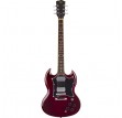 SG style solid basswood body Canadian maple neck with 2 way truss rod Cream bound Rosewood fingerboard with dot inlays 22 frets 2 chrome covered humbucker pickups 2 volume and 2 tone controls 3 way toggle switch 5 ply black scratchplate Chrome diecast machine heads with tulip buttons Chrome Tune-O-Matic bridge and tailpiece Comes with SX clip-on tuner, 7mm padded gig bag, strap, picks, lead and UPlay Guitar Guide with free online lessons.