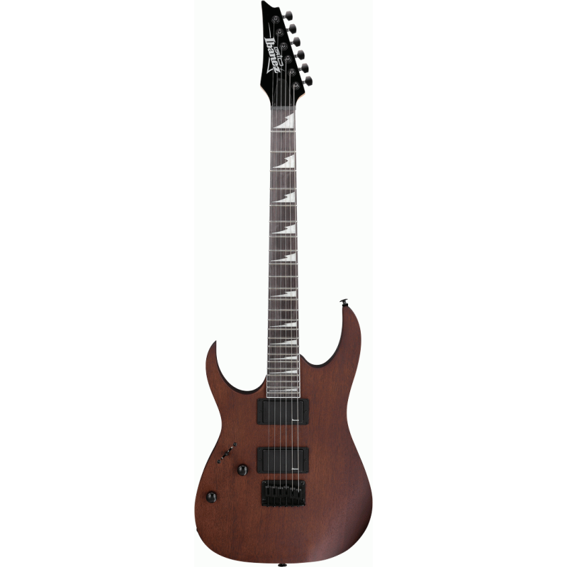 The Ibanez RG121DXL WNF Gio Electric Guitar in Walnut Flat - The RG is the most recognizable and distinctive guitar in the Ibanez line. Three decades of metal have forged this high-performance machine, honing it for both speed and strength. Whether you favor a hardtail (fixed) bridge or our industry-leading locking tremolo system, the RG is a precision instrument.